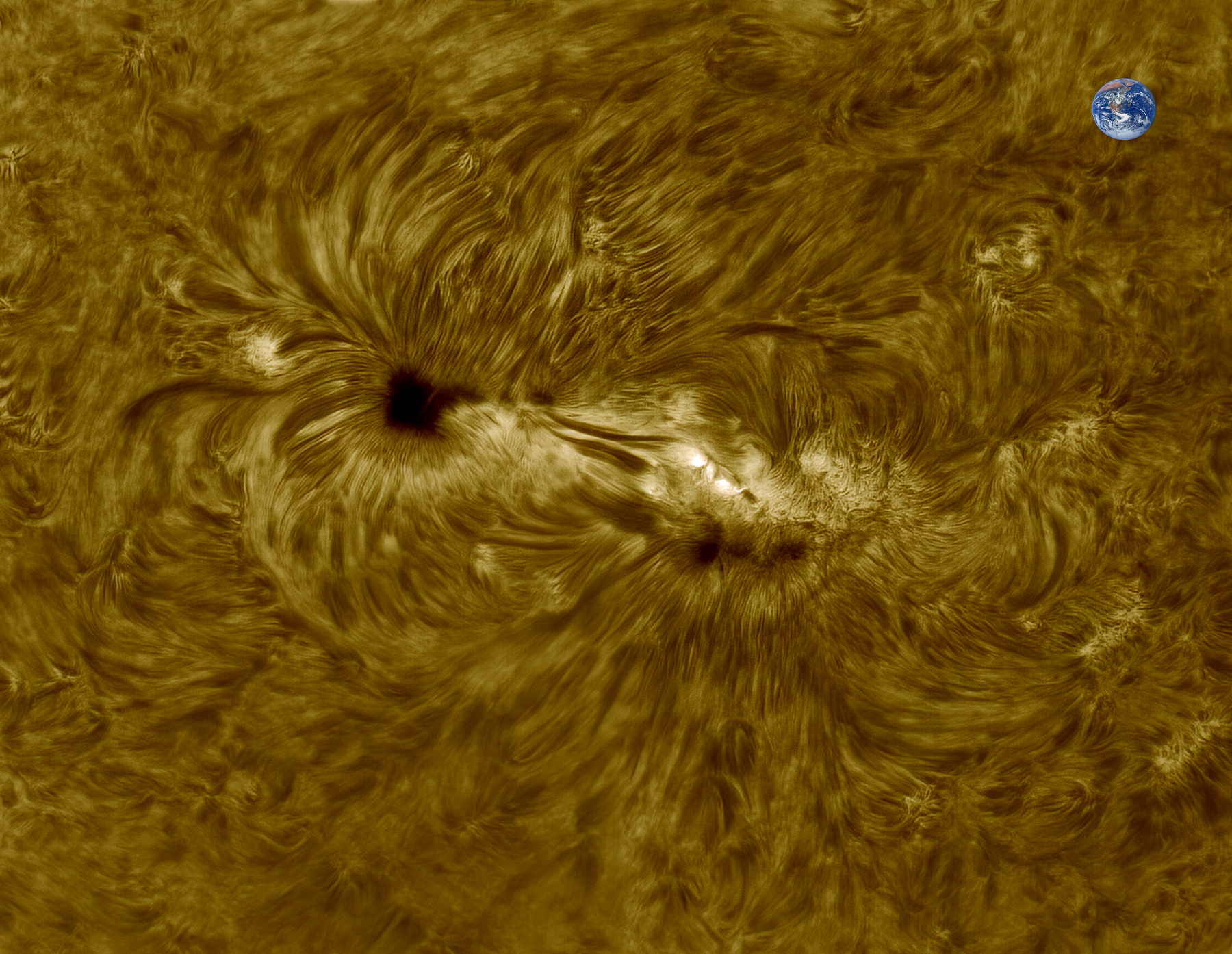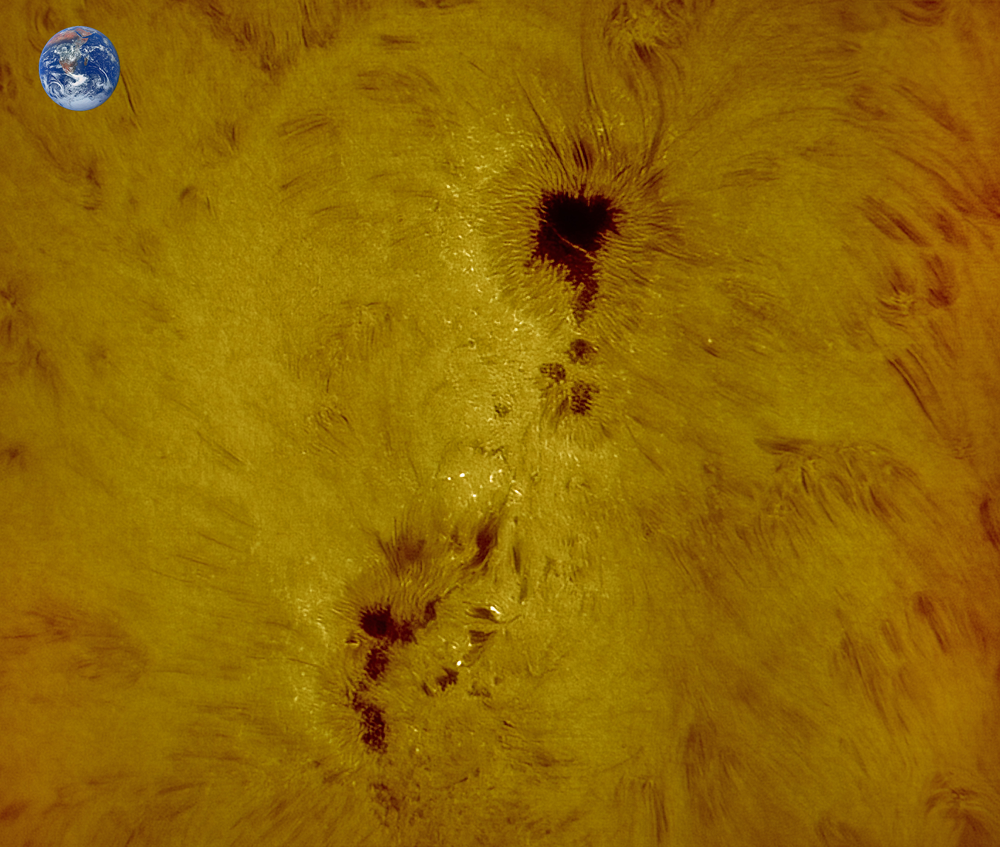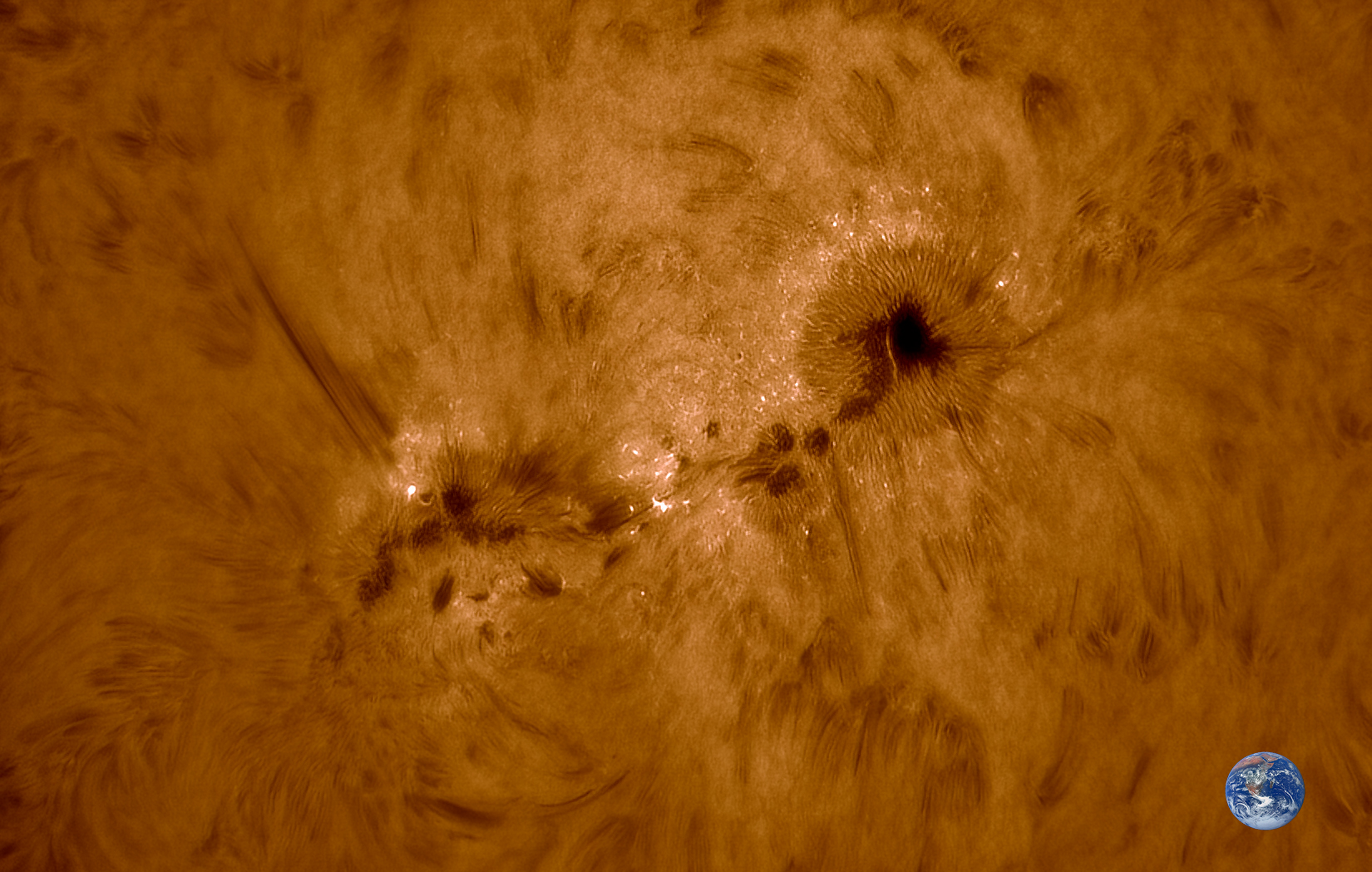 Un des plus gros groupes de taches solaires depuis l’évènement de Carrington en 1859… soit 470 000 km de long !!
